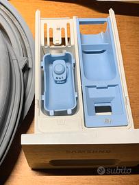 Vendo set tutto insieme di pezzi di ricambio per lavatrice samsung; il modello è indicato nella foto del pannello di comando. Una delle 2 guarnizioni ha dei tagli come si vede in foto; il resto e’ in buone condizioni