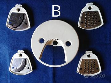 B: Dischetti = Utilizzare per grattugiare formaggio, verdure e frutta.