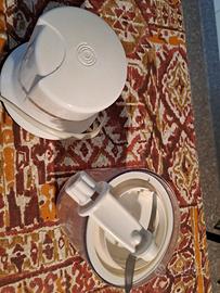 Vendo pezzi ricambio frullatore Moulinex. Il motore è perfettamente funzionante, lama e copertura della tazza sono perfette, come la base marrone. Solo la tazza è leggermente rovinata. Tutto comunque funzionante.