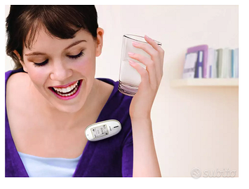 PHILIPS Accessorio vivavoce per telefoni cordless MT3120T/12 NUOVO ORIGINALE Muoviti liberamente mentre parli al telefono Telefono vivavoce con un audio nitido come il cristallo Compatibilità universale Display da 1,8"/retr. bianca Vivavoce Microfono e altoparlante per chiamate a mani libere cristalline Microfono e altoparlante per chiamate a mani libere cristalline Il telefono vivavoce Philips diffonde, attraverso l'altoparlante con camera acustica sigillata ad alte prestazioni, un audio potente e cristallino. Con la modalità vivavoce, offre un audio molto più forte e nitido rispetto a qualunque telefono DECT o cellulare. Compatibile con quasi tutti i telefoni DECT cordless Compatibile con quasi tutti i telefoni DECT cordless Il telefono vivavoce Philips DECT è compatibile con il profilo GAP (Generic Access Profile), quindi per rispondere alle chiamate in arrivo ed effettuare chiamate è sufficiente registrare il telefono sulla base corrispondente. Comandi tattili rapidi e semplici Comandi tattili rapidi e semplici Effettuare una chiamata è più semplice che leggere un lungo manuale utente. Ecco perché il telefono vivavoce Philips ha un touch screen resistente e sensibile che consente di comporre numeri, effettuare chiamate e gestire le impostazioni in modo semplice. Indossalo con la clip, con il laccetto o posizionalo vicino a te Indossalo con la clip, con il laccetto o posizionalo vicino a te Con clip, laccetto o supporto: diversamente dai telefoni DECT tradizionali in modalità vivavoce, questo telefono Philips è sufficientemente leggero e compatto per portarlo sempre con te. Puoi indossarlo con la clip, il laccetto o posizionarlo vicino a te in vivavoce, lasciando in questo modo le mani e le orecchie libere per altre attività, avendo inoltre la possibilità di parlare più a lungo. Modalità vivavoce o cuffie per la massima privacy Modalità vivavoce o cuffie per la massima privacy Per avere la massima privacy e usufruire contemporaneamente della vera comunicazion