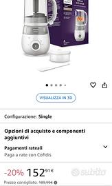 Vendo Philips Avent EasyPappa Plus 4 in 1 Cuocipappa Multifunzione, Cuoci a Vapore, Frulla, Scongela e Riscalda in un Recipiente, 1 litro, Bianco/Grigio