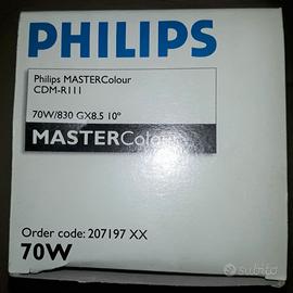 Lampadine nuove marca Philips, modello MasterColour CDM-R111, da 35W o 70W, attacco GX8.5, colorazione calda 830 e fredda 942, tutte con apertura 10°, in confezione singola originale. Disponibili : - n°6 35W/830, n°41 35W/942, n°6 70W/830, n°13 70W/942. Vendo come privato, prezzo indicato per una singola lampadina gia' molto basso, costano anche oltre 50euro l'una in negozio o su internet. Se da spedire quantita' minima venduta 6 pezzi. In caso di spedizione di piu' scatole il costo della spedizione potrebbe variare.