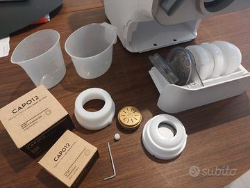 Pasta Maker con 4 trafile in dotazione più anello di riduzione Capo12 e trafila in bronzo Capo 12 n. 192 tagliatelle 8mm, spessore 0.8 mm comprati a parte. Ottime condizioni.