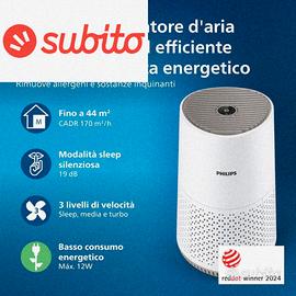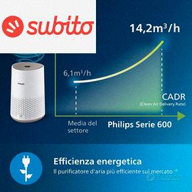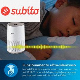 Informazioni su questo articolo Purifica a fondo ambienti fino a 44m²: con un CADR di 170 m³/h, il suo potente flusso d'aria pulisce l'aria in pochi minuti (4), rimuovendo particelle come PM2,5, pollini, polvere, virus e altri agenti inquinanti. Rimuove il 99,97% delle particelle a 0,003 micron(1): la tecnologia NanoProtect HEPA intrappola gli agenti inquinanti e utilizza una carica elettrostatica per attirarli, pulendo l'aria fino a 2 volte in più rispetto ai tradizionali filtri HEPA H13(5) Efficienza energetica: il purificatore d'aria più efficiente del mercato (2). Il dispositivo funziona a una potenza massima di 12 W ed è stato progettato per ridurre al minimo il consumo di energia senza compromettere la purificazione dell'aria. Collegato all'app Philips Air+: utilizza l'app per accendere e spegnere il purificatore, regolare le impostazioni di velocità e monitorare lo stato del filtro. Per maggiori informazioni sulla purificazione dell'aria, consulta i nostri articoli sulla app. Funzionamento ultra silenzioso: in modalità Sleep, funziona solo a 19 dB (3), più silenzioso di un sussurro. La luce del display digitale viene attenuata per ridurre al minimo i disturbi della luce.