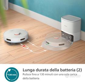 Philips HomeRun serie 2000: 2-in-1 Robot aspirapolvere e lavapavimenti con 2700Pa di aspirazione & 130min autonomia, potenziamento tappeti, stazione auto-svuotamento, Bianco artico (XU2100/20)