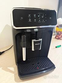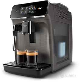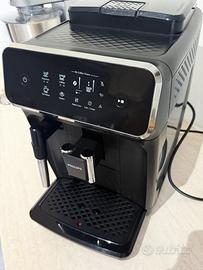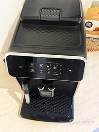 Serie 2200 Macchina da caffè automatica, serbatoio acqua estraibile, vassoio raccogligocce estraibile, funzione acqua calda, erogazione caffè regolabile in altezza, spegnimento automatico, decalcificazione promemoria, durezza dell'acqua programmabile, grado di macinatura regolabile e sistema di formazione schiuma latte per cappuccini e altro. Usata per un pò, vendo per cambio macchina ad upgrade. Per qualsiasi info sono a disposizione :)