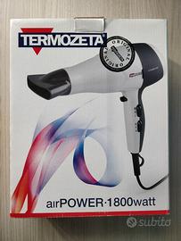Phon asciuga capelli Marca Termozeta Modello Air Power 1800 Potenza 1800 W 2 velocità 3 temperature Tasto aria fredda Concentratore d'aria Gancio Lunghezza cavo 152 cm Scatola originale