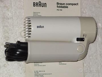 Phon asciugacapelli da viaggio Braun compact PG 700 - 4579 550W, Design Director D. Rams , vintage nuovo da collezione , completo di scatolo e istruzioni.