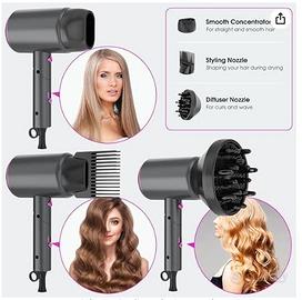 Asciugacapelli ionico 2400W con Borsa da viaggio [Leggero, alta velocità & pieghevole] Set per Acconciature con Concentratore/Diffusore/Pettine per volume, Phon Capelli a Temperatura Costante
