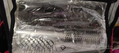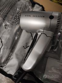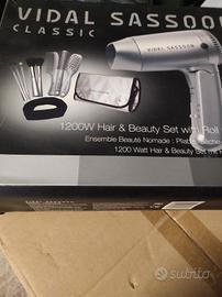 phon da viaggio, completo di custodia,comprende spazzola, specchio,vari pennelli,fascia per capelli, pettine,la custodia si può chiudere per riporre nella valigia oppure ha un gancio che si può appendere,srotolandola ha tutti i vari compartimenti chiusi con cerniera.Il phon ha 1200W di potenza, pieghevole,nuovo mai usato, completo di scatola e istruzioni.