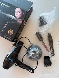 Phon hair dryer professional 4000 Watts, comprensivo di diversi accessori per fare piega sia liscia che molla sia ha la spazzola per le onde. Mai utilizzato, appena ricevuto ma ne ho già uno identico