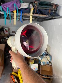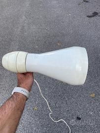 Originale vintage anni 70, con lampada infrarossi. Realmente funzionante come phon, veniva utilizzato in quanto credenza comune che la speciale lampada a luce infrarossa portasse beneficio alla salute dei capelli. Ad oggi nessuna prova che sia effettivamente così, ma l’oggetto rimane bellissimo, con quel fascino steampunk proprio tecnologia dell’epoca. Buone condizioni generali, presenta qualche segno del tempo. Funzionante.