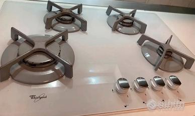 Vendo, piano cottura Whirlpool in vetro bianco, antigraffio. Misure: 73x51 cm il vetro, Non spedisco. Lo spartifiamma e la corona riportano segni di usura Pagato 400 euro