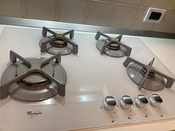 Vendo, piano cottura Whirlpool in vetro bianco, antigraffio. Misure: 73x51 cm il vetro,