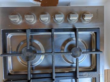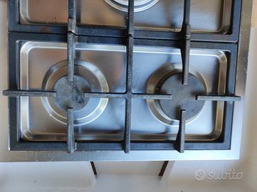 Piano cottura 5 fuochi a gas / accensione elettrica/ sicurezza fughe di gas / inox con griglie in ghisa pesante tipo professionale . Misure 86x51 foro incasso 83x47.