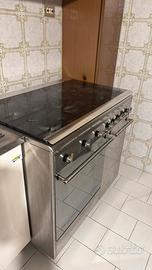 Vendo un piano cottura a 5 fuochi della Smeg, attualmente predisposto a metano, di 90cm di larghezza, 65cm di profondità con le maniglie e di 85cm di altezza color argento metalizzato, doppio sportello per forno e bombola e vetro protettico sopra i fuochi.