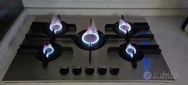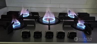 Vendo piano cottura 5 fuochi Hotpoint Ariston con sistema direct flame (risparmio di gas del 30%) e trattamento antigraffio Diamond Clean per migliore pulizia.