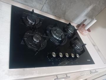 piano cottura 5 fuochi di colore nero di vetro il piano è in buone condizioni tutto funzionante usato 6 mesi