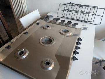 Piano cottura a 5 fuochi, pronto all'installazione e completo di tutti i componenti. Preferenza per consegna a mano
