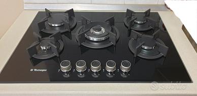 Piano cottura da incasso vetro nero temperato. 5 Fuochi gas accensione elettronica automatica sotto le manopole e valvole di sicurezza totale griglie e cappellotti in Ghisa marca Tecnogas. (ATTENZIONE!! IL PREZZO AL PUBBLICO È DI €389,00 È SUPER SCONTATO PERCHÉ NON TRATTIAMO PIÙ QUESTO ARTICOLO ULTIMO PEZZO RIMASTO IMBALLATO ORIGINALE.