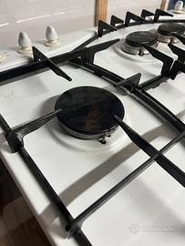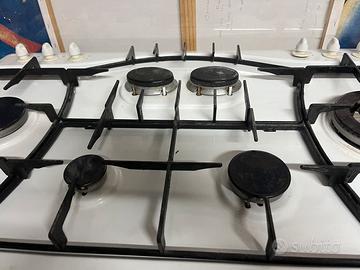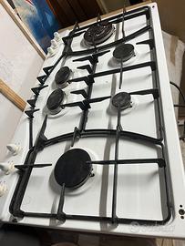 Piano cottura bianco Ariston 6 fuochi dim 80x50 cm Piccolo difetto sul piano ma si può ritoccare con smalto bianco.