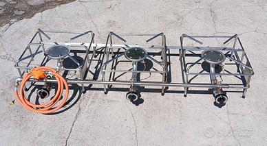 Piano cottura a 3 fuochi in acciaio per cucinare pentole grandi. NUOVO. Per associazioni o altre che fanno feste. Misura 150 x 60 cm