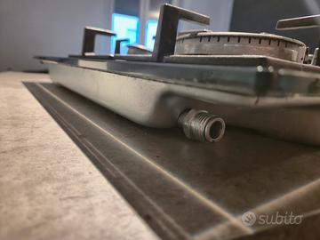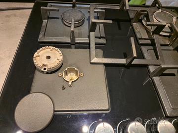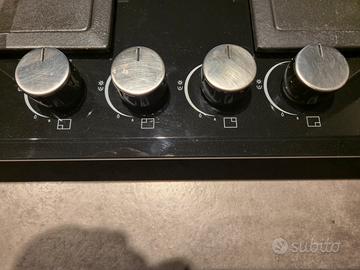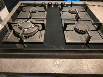 Elegante piano cottura a gas con finitura in vetro nero, misure 60cm. Set di Pentole e padelle