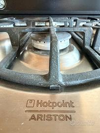 Vendo piano cottura a gas da incasso con 4 fuochi, completo di griglie in ghisa robuste e coperchio nero richiudibile Ariston. Condizioni buone: perfettamente funzionante, con normali segni di utilizzo. Misure del foro sul top per inserire il piano cottura: 56 x 48