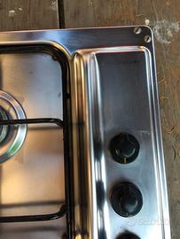 Piano cottura a gas a 4 fuochi usato, composto da due fornelli medi, uno grande e uno piccolo. I fuochi funzionano tutti perfettamente. 70 euro. Ritiro a mano. Misure cm 58x50 il sopra. Prezzo trattabile.
