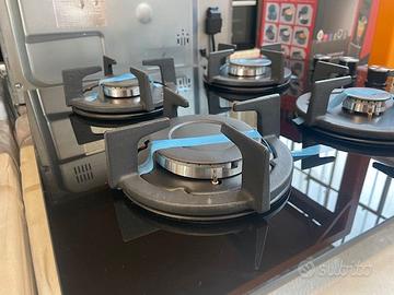 Atlantide Store propone un piano cottura a gas elegante e funzionale, disponibile nella variante vetro nero, per adattarsi perfettamente a qualsiasi stile di cucina.