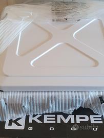Piano cottura a gas 4 fuochi Kemper, 4,65 kW. Dotato di bruciatore in acciaio inox, griglia e coperchio protettivo rimovibile. Funziona con gas butano o propano. Connettore ciuccio