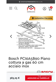Vendo Piano cottura a gas 60cm Bosch acciaio inox utilizzato solo 3 mesi a €100. Misure in foto, ritiro a Peschiera Borromeo (MI)