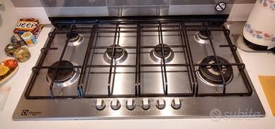 Piano cottura a gas Electrolux 6 fuochi, completo di vetro temperato di copertura. Presenta dei leggeri graffi da usura ma in ottime condizioni.