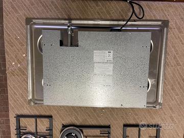 Piano cottura a gas in acciaio, ribassato rispetto al piano di lavoro. Marchio Foster modello N7075VFT con 5 fuochi, griglie in ghisa . Il piano è ideato per un montaggio sopratop o filotop. Il prodotto si presenta in ottime condizioni, sono visibili leggeri segni di sfregamento sui bordi dell’acciaio, ma poco visibili. È stato utilizzato per un solo mese, come si può vedere dalle foto risulta infatti praticamente nuovo. Le misure superiori di ingombro sono L 80,5 x P 51,3 cm Le misure del sottopiatto, per il foro sul piano della cucina, sono L 78 x P 49 x H 9 cm. Misure esatte, da considerare qualche mm in più per lo sfioro.