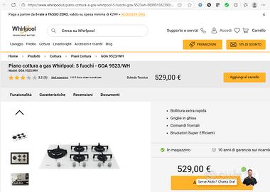 Vendo Piano cottura a gas Whirlpool: 5 fuochi - GOA 9523/WH usato pochissime volte. N.B. Consegna solo a mano dietro appuntamento, non spedisco. N.B. Consegna solo a mano dietro appuntamento, non spedisco.