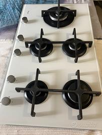 Piano cottura in vetro bianco in ottime condizioni, 5 fornelli. Dimensioni 51cm*86cm. Usato 5 anni, cambiato per passaggio a piano induzione . Prezzo da listino (sito ufficiale Whirlpool) 499€.