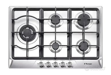 Piano cottura da incasso Acciaio inox 5 Fuochi gas di cui 1 Ultrarapido corona Gigante accensione elettronica automatica sotto le manopole e valvole di sicurezza totale griglie e cappellotti in Ghisa marca (Tecnogas). ATTENZIONE!! ULTIMO PEZZO RIMASTO.