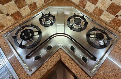 Vendo piano cottura angolare Franke Design Plus DPA 3GAV‑TC, 4 fuochi a gas, acciaio inox, griglie in ghisa.