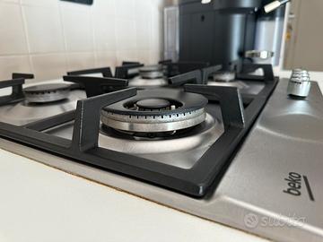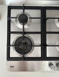 Vendo piano cottura a gas Beko HIAW64225SX (4 fuochi, di cui 1 grande con supporto alto/Wok), dal design elegante in acciaio inox e con manopole silver.