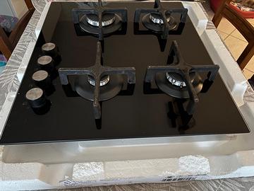 Piano cottura vetro nero con supporti in ghisa