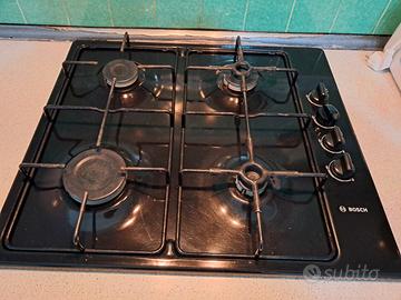 Vendo insieme, perfettamente funzionanti, causa acquisto nuova cucina componibile. Piano cottura da incasso Bosch, 4 fornelli, a gas. Cappa Faber, in acciaio inox, 3 velocità.