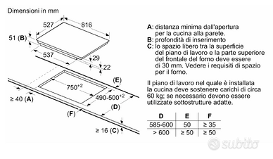 Dimensioni Piano Cottura Bosch PXV875DC1E