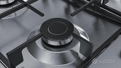 Bosch Serie PGP6B5B60, Piano cottura a gas, Manopole a ponticello: controllo ergonomico, 4 fuochi, Acciaio, Versione Esclusiva Amazon, 60 cm
