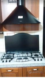 Hotpoint Ariston Piano Cottura 90 cm a Gas 6 Fuochi (1 Bruciatore Tripla Corona) colore Avana puntinato Cappa Elica tonda 90cm color marrone ramato
