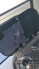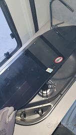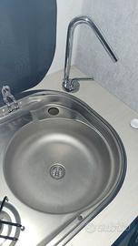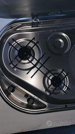 Piano cottura nuovo mai usato marchio Domestic. Lavello 30cm di diametro, rubinetto con miscelatore acqua calda e fredda. 2 fuochi da 17cm e 11cm. Misure totali 68x44cm e 18cm di profondità.