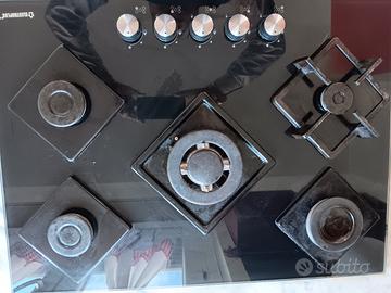 si cede piano cottura 5 fuochi con base in vetro scuro comprato 2 anni fa 240 euro ,in vendita in quanto acquistato piano cottura ad induzione, in buono stato come da foto misure 60 x 50 prezzo 75 euro non trattabile tel. 3348326349.