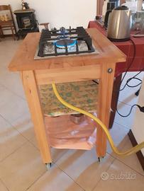 Piano cottura 2 fuochi, a gpl/metano. Valvole sicurezza. Accensione elettrica. Dimensioni carrello cm 60 x cm 50 e altezza cm 85. Utile all'esterno . Ideale per chi ha il piano induzione e manca la corrente.