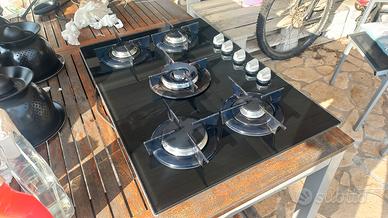 Il piano cottura è in condizioni buone con ugelli metano sostituiti da poco. Presenta i tipici segni di usura e graffi sulla superficie in vetro.