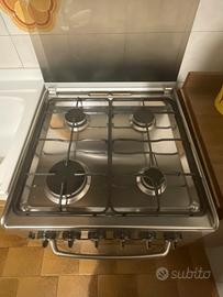 Cucina a gas 4fuochi con forno a gas colore inox con coperchio in vetro. Ritiro a carico dell’acquirente.