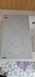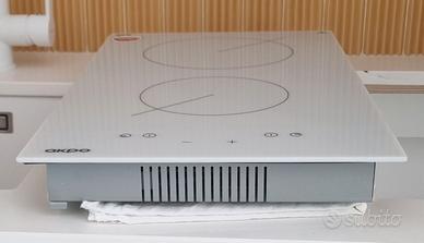 Piano cottura elettrico in vetroceramica di colore bianco con due zone di cottura. - Design moderno e minimale. - Superficie liscia in vetroceramica.